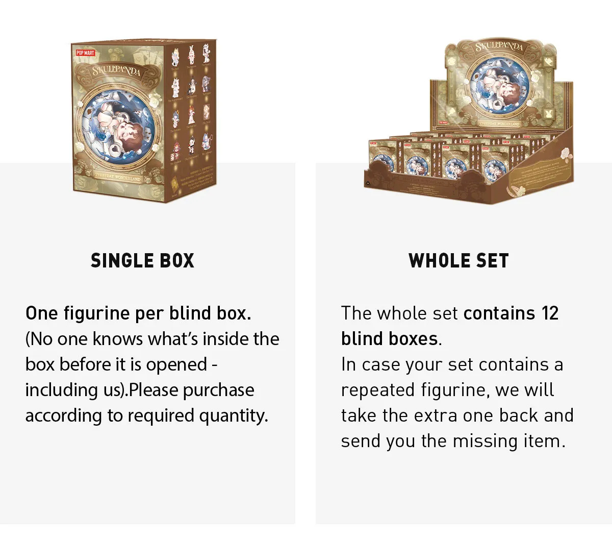 - Toàn bộ hộp (Whole Box): Khi khách hàng mua toàn bộ hộp, sẽ không có thiết kế trùng lặp và có thể xuất hiện nhân vật hiếm.