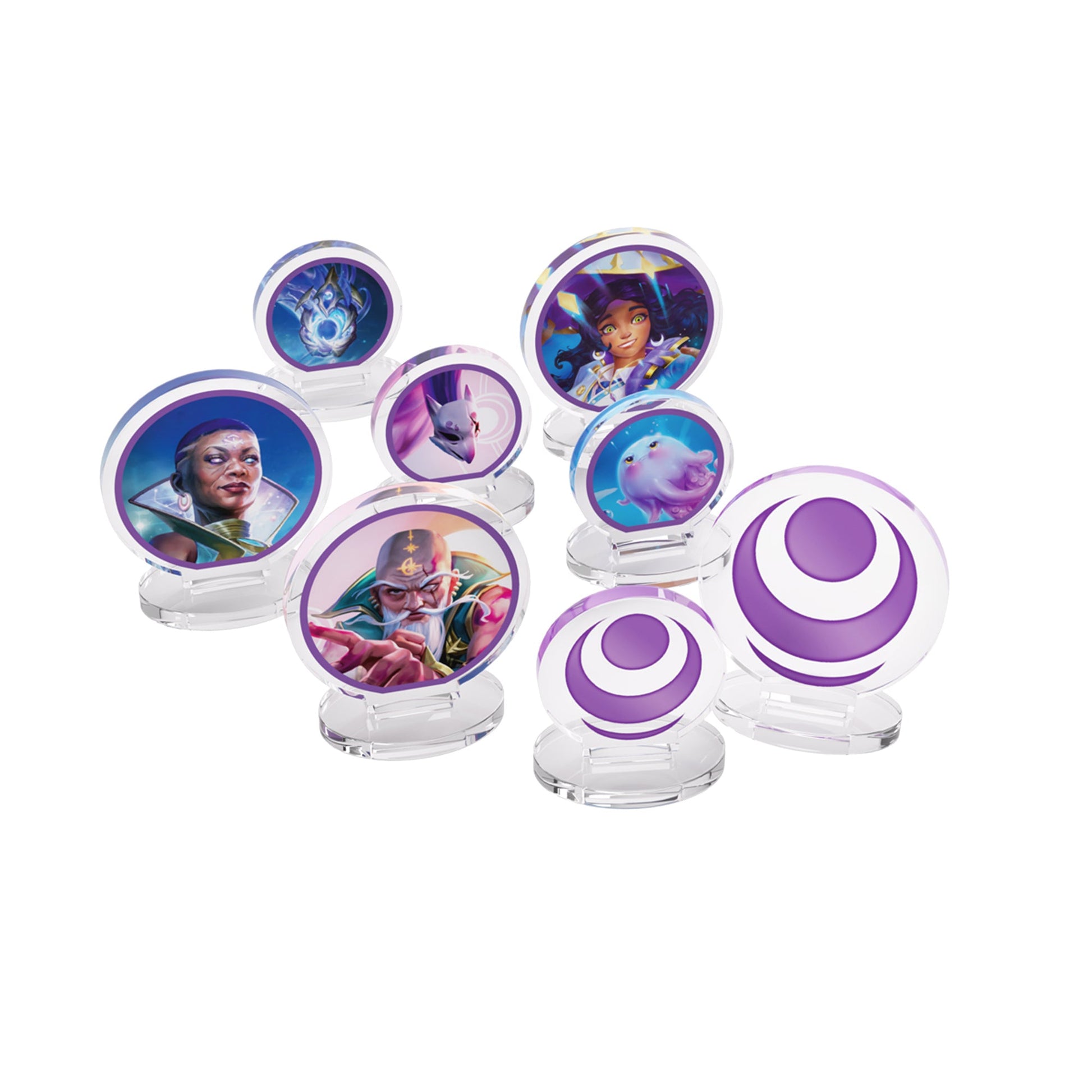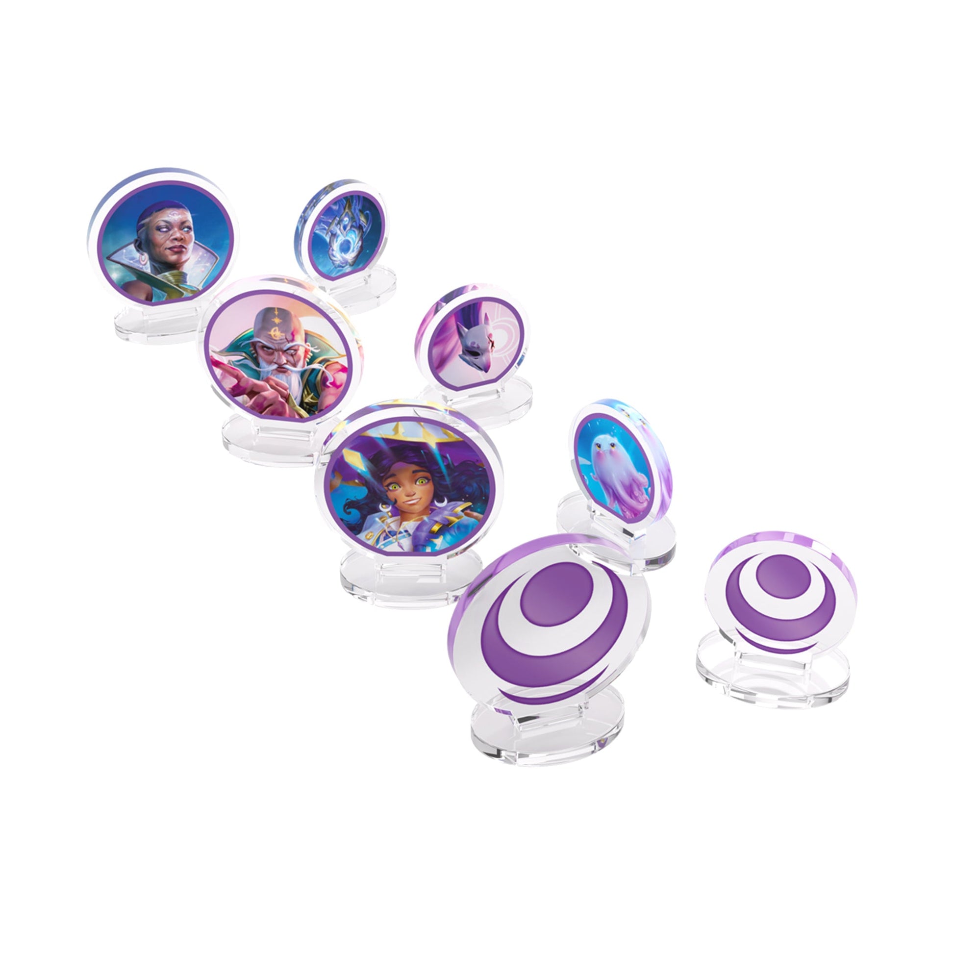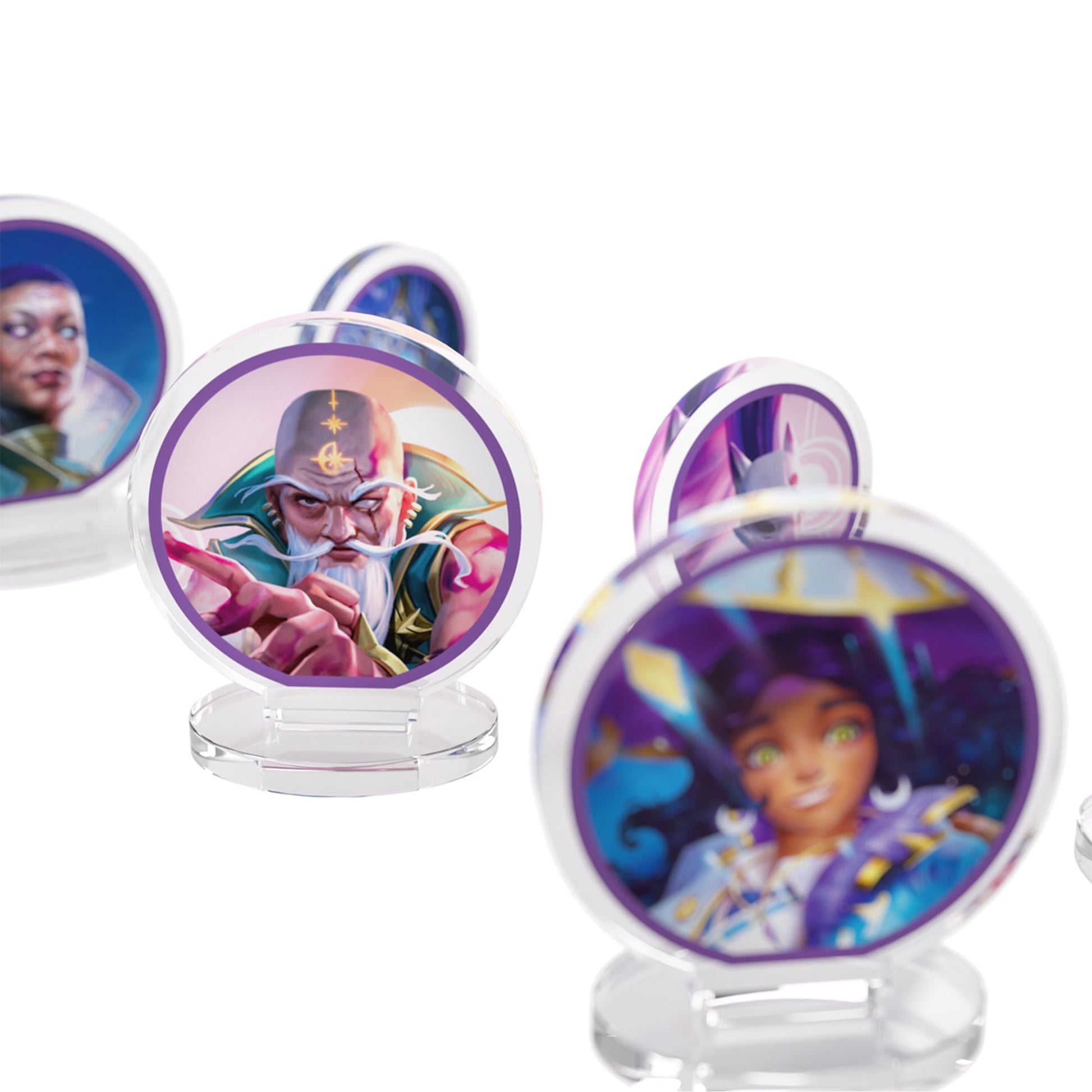 Bộ hình nhân đứng (Standees) bằng acrylic cao cấp được cấp phép chính thức từ Gamegenic được thiết kế để làm phong phú thêm trải nghiệm của người chơi bằng cách mang các anh hùng và bạn đồng hành của Altered trực tiếp lên bàn chơi!