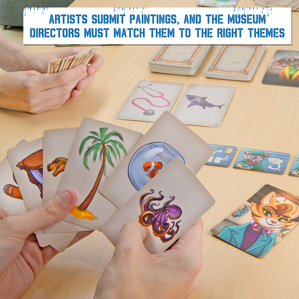 Bức tranh nào là thật và bức tranh nào là giả? Trong trò chơi thẻ bài hợp tác chủ đề nghệ thuật đầy kịch tính này, người chơi sẽ được chia thành hai đội: họa sĩ và giám đốc bảo tàng. Các giám đốc bảo tàng sẽ trình bày các thẻ bài đại diện cho chủ đề triển lãm, trong khi các họa sĩ phải bí mật chọn những bức tranh phù hợp nhất từ tay mình. Tuy nhiên, kẻ làm giả nghệ thuật Belratti đã bí mật trà trộn những bức tranh giả vào để đánh lừa mọi người. Nhiệm vụ của bạn là phối hợp cùng đồng đội để nhận diện đâu là tác phẩm do họa sĩ gửi và đâu là đồ giả. Với 192 thẻ hình ảnh mang lại nhiều liên tưởng phong phú, Belratti tạo ra thử thách thú vị cho cả gia đình trong việc truy tìm kẻ làm giả.