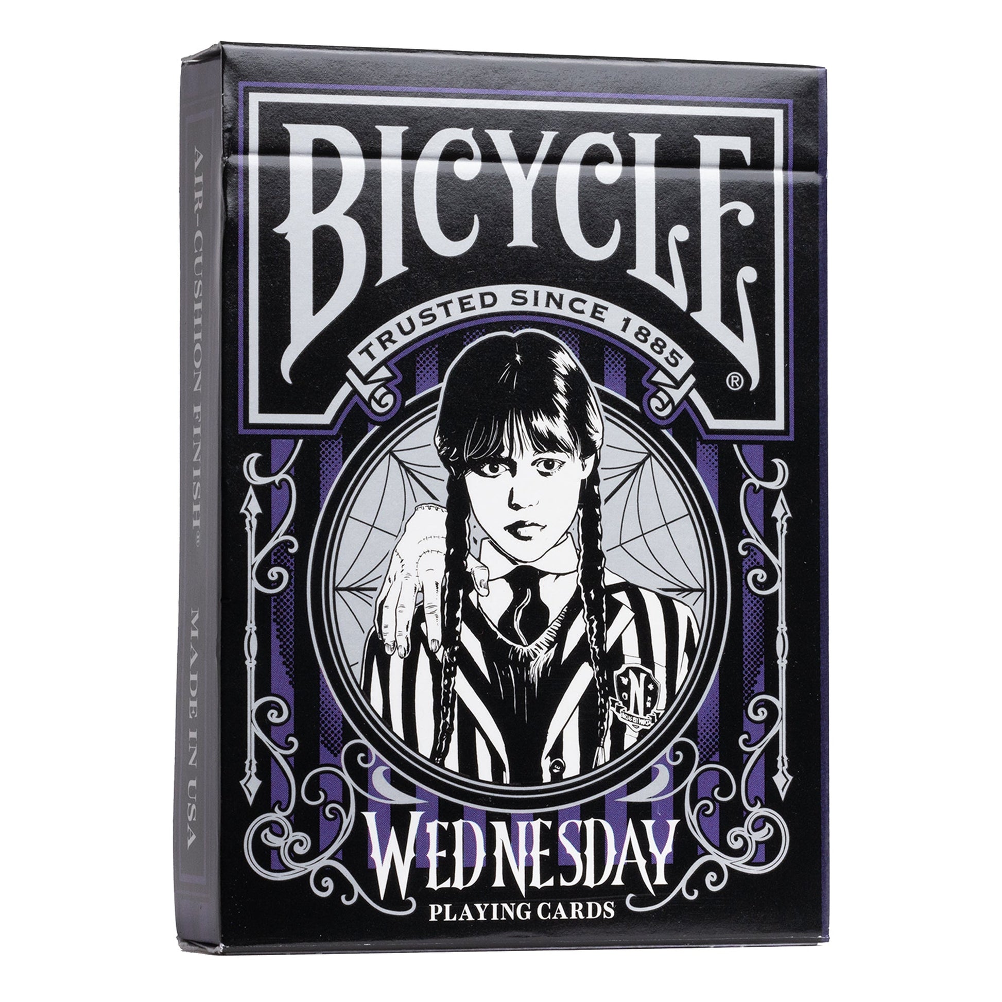 Bước vào thế giới bóng tối và huyền bí của Học viện Nevermore với bộ bài Bicycle Wednesday Playing Cards! Lấy cảm hứng từ series phim ăn khách của Netflix với sự góp mặt của Jenna Ortega trong vai Wednesday Addams, bộ bài này mang đến một luồng gió mới đầy kịch tính cho mọi ván bài của bạn.