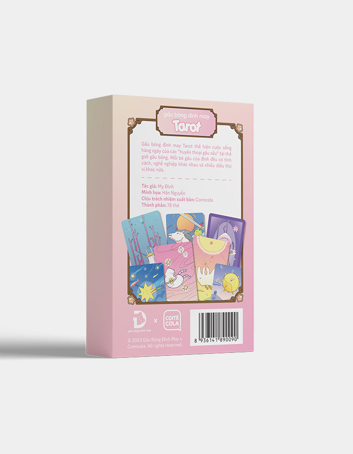 Bộ bài Tarot Gấu Bông Đình May là sự kết hợp độc đáo giữa Comicola và thương hiệu "Gấu bông Đình May" nổi tiếng. Bộ bài tái hiện cuộc sống hàng ngày của những "huyền thoại gấu xấu" với phong cách hài hước, ấm áp và tràn đầy năng lượng tích cực. Đây không chỉ là một công cụ để chiêm nghiệm, tiên tri mà còn là một món quà tinh thần giúp bạn tìm thấy niềm vui trong những điều giản dị.