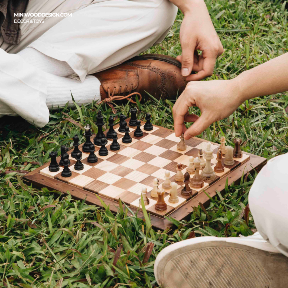 Bộ cờ vua size du lịch của Miniwood Design là sản phẩm độc đáo dành cho những người yêu thích môn thể thao trí tuệ này. Với các quân cờ được chế tác tỉ mỉ từ sừng trâu tự nhiên, sản phẩm không chỉ là một trò chơi mà còn là một tác phẩm nghệ thuật sang trọng.