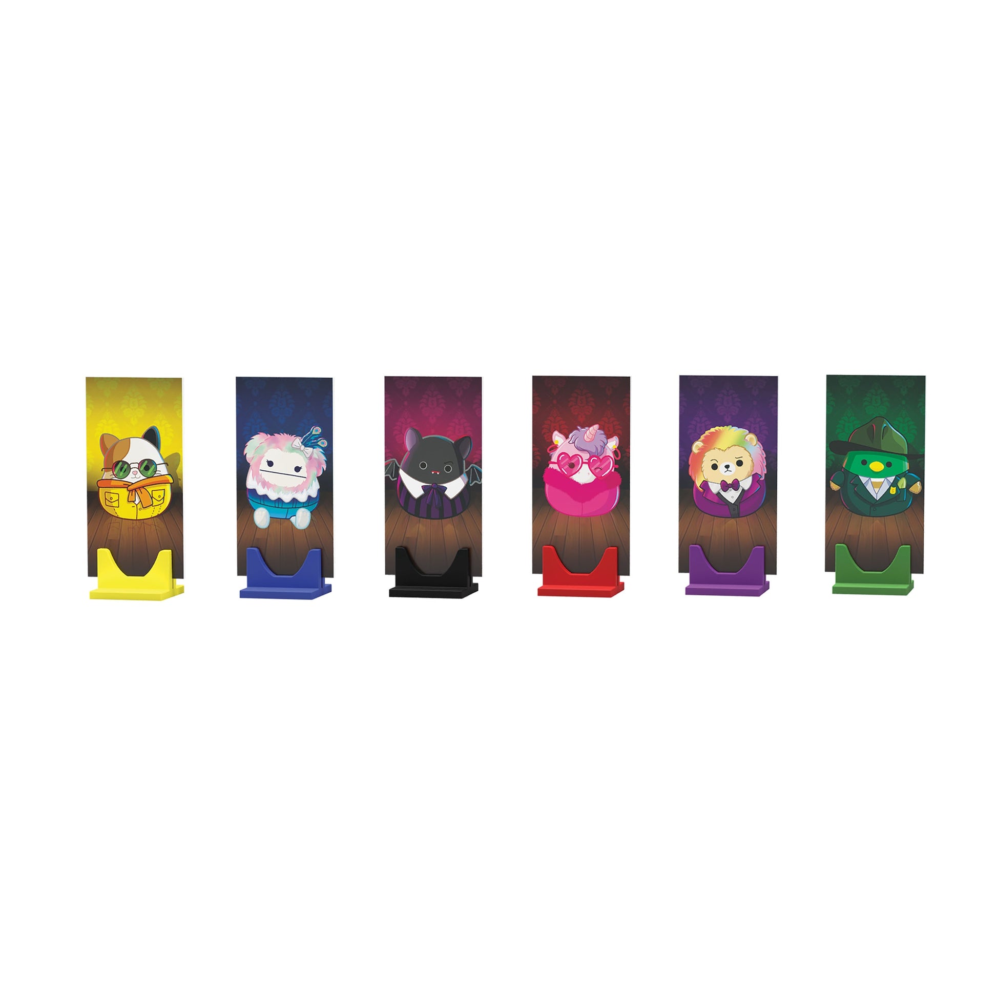 Trong trò chơi Clue®: Original Squishmallows™, bạn sẽ cùng Cam, Emily, Leonard, Lola, Zozo và Avery khám phá mọi ngóc ngách của biệt thự để tìm ra AI đã ăn món mac n' cheese, VẬT DỤNG nào được để lại làm bằng chứng, và NƠI vụ trộm thơm ngon này đã diễn ra.