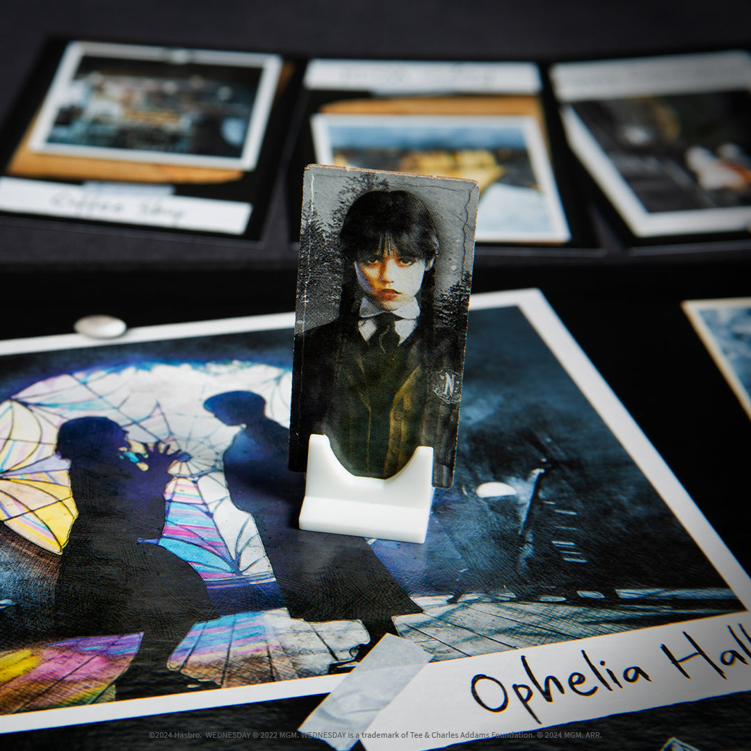 Một bí ẩn đen tối với những mối nguy hiểm kinh hoàng đang chờ bạn giải đáp trong phiên bản hiện đại, đầy ma mị của trò chơi thám tử cổ điển Clue. Khi quái vật Hyde đang lẩn khuất, bạn sẽ vào vai các học sinh nổi tiếng của Học viện Nevermore như Wednesday Addams và Ajax Petropolus.