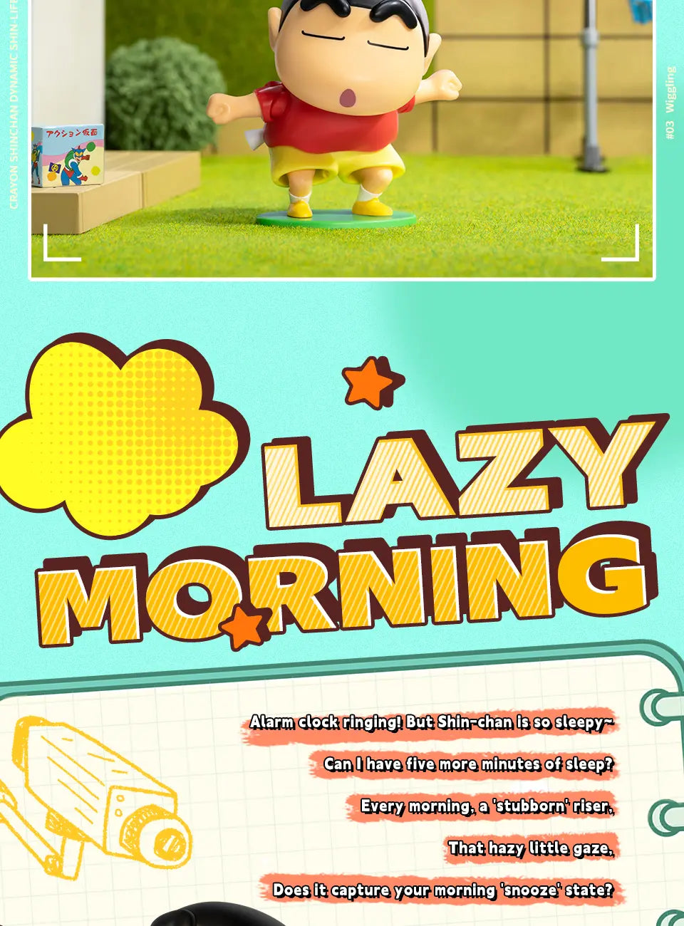 Chào mừng bạn đến với thế giới đầy màu sắc và hài hước của Shin - Cậu bé bút chì! Bộ sưu tập DYNAMIC SHIN-LIFE từ thương hiệu 52TOYS tái hiện lại những khoảnh khắc đời thường nhưng vô cùng tinh nghịch và sống động của nhân vật Shinchan nổi tiếng.