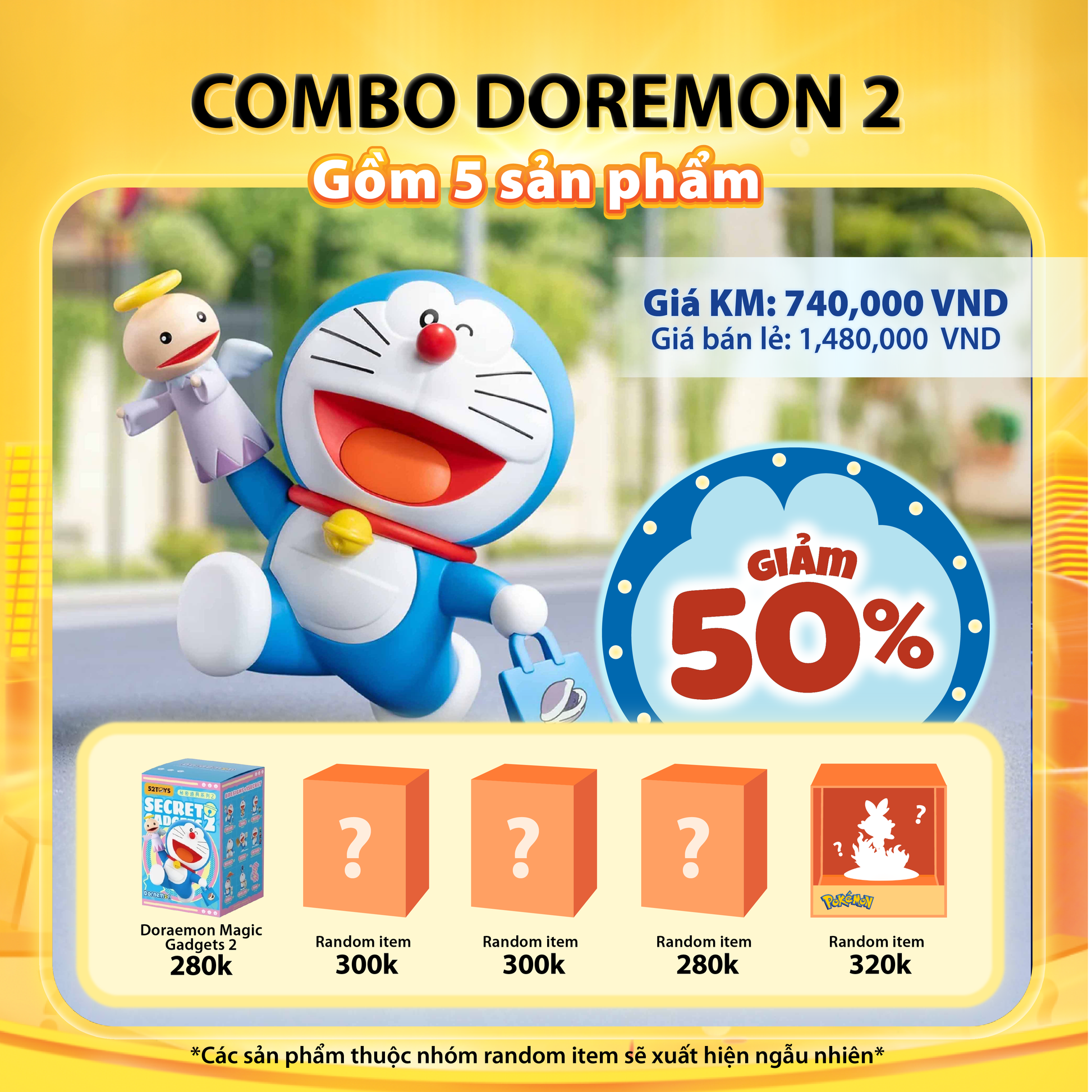 - Số lượng: Combo 5 mô hình (1 Doremon + 4 Blind Box)