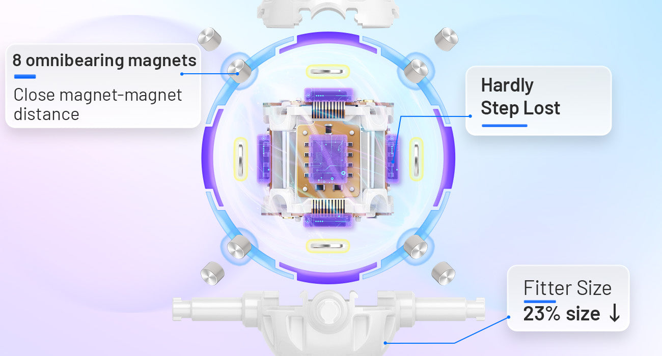 - Lõi thông minh & Hệ thống từ tính: Tích hợp 64 nam châm lực hút mạnh mẽ, kết hợp với lõi thông minh giúp theo dõi từng vòng xoay và giảm lực cản khởi động đáng kể.
