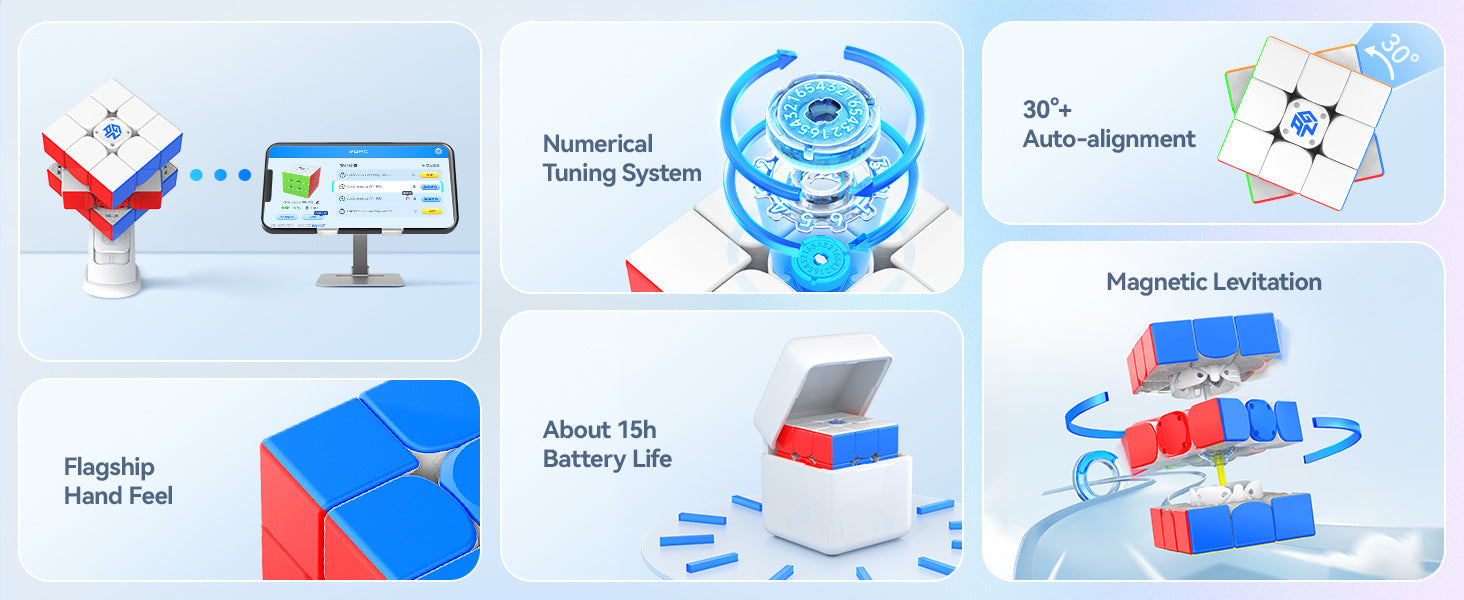 - Smart Cube Thông Minh: Kết nối Bluetooth với ứng dụng CubeStation. Hỗ trợ thi đấu online, phân tích dữ liệu giải, và tập luyện chuyên nghiệp.