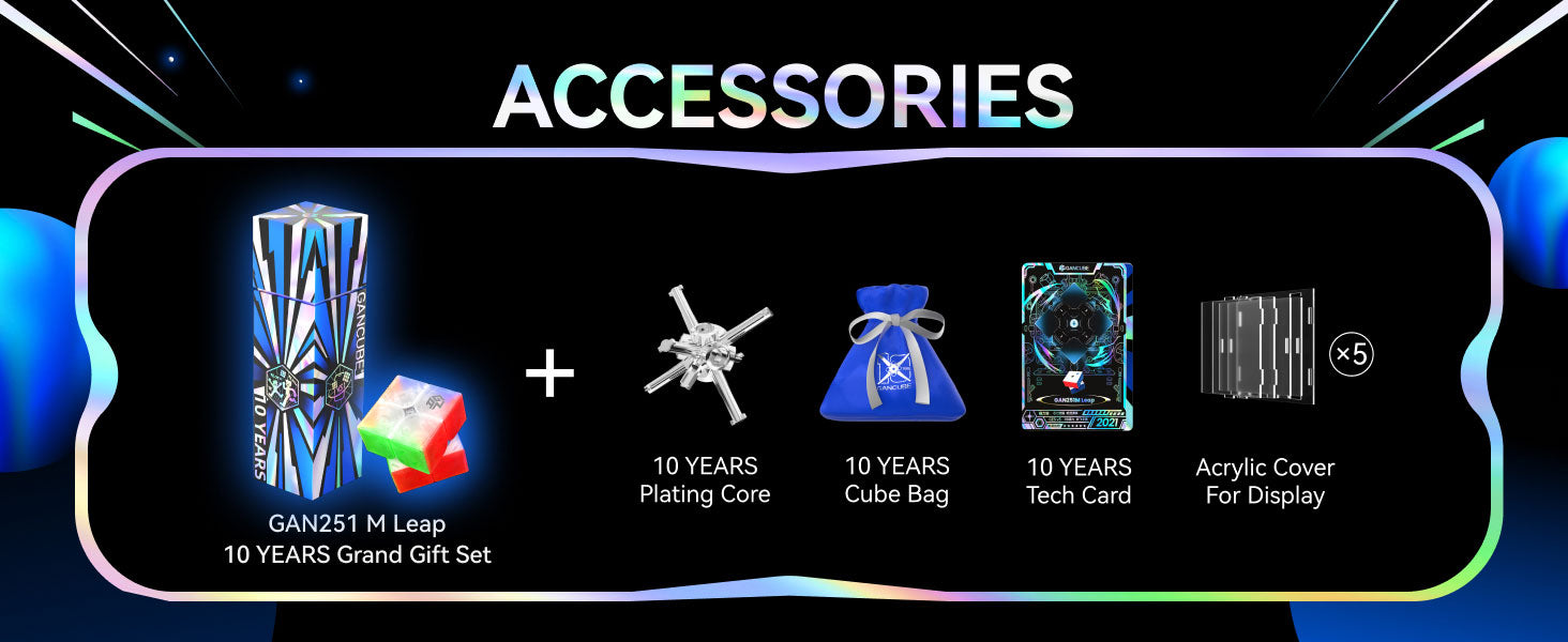 GAN251 M Leap Ten Years Grand Gift Set là bộ sản phẩm giới hạn đặc biệt kỷ niệm hành trình 10 năm của thương hiệu GANCUBE danh tiếng. Đây không chỉ là một khối Rubik 2x2 hiệu suất cao mà còn là một tác phẩm nghệ thuật sưu tầm đầy giá trị dành cho các cuber chuyên nghiệp và những người yêu thích vẻ đẹp cơ khí tinh xảo.