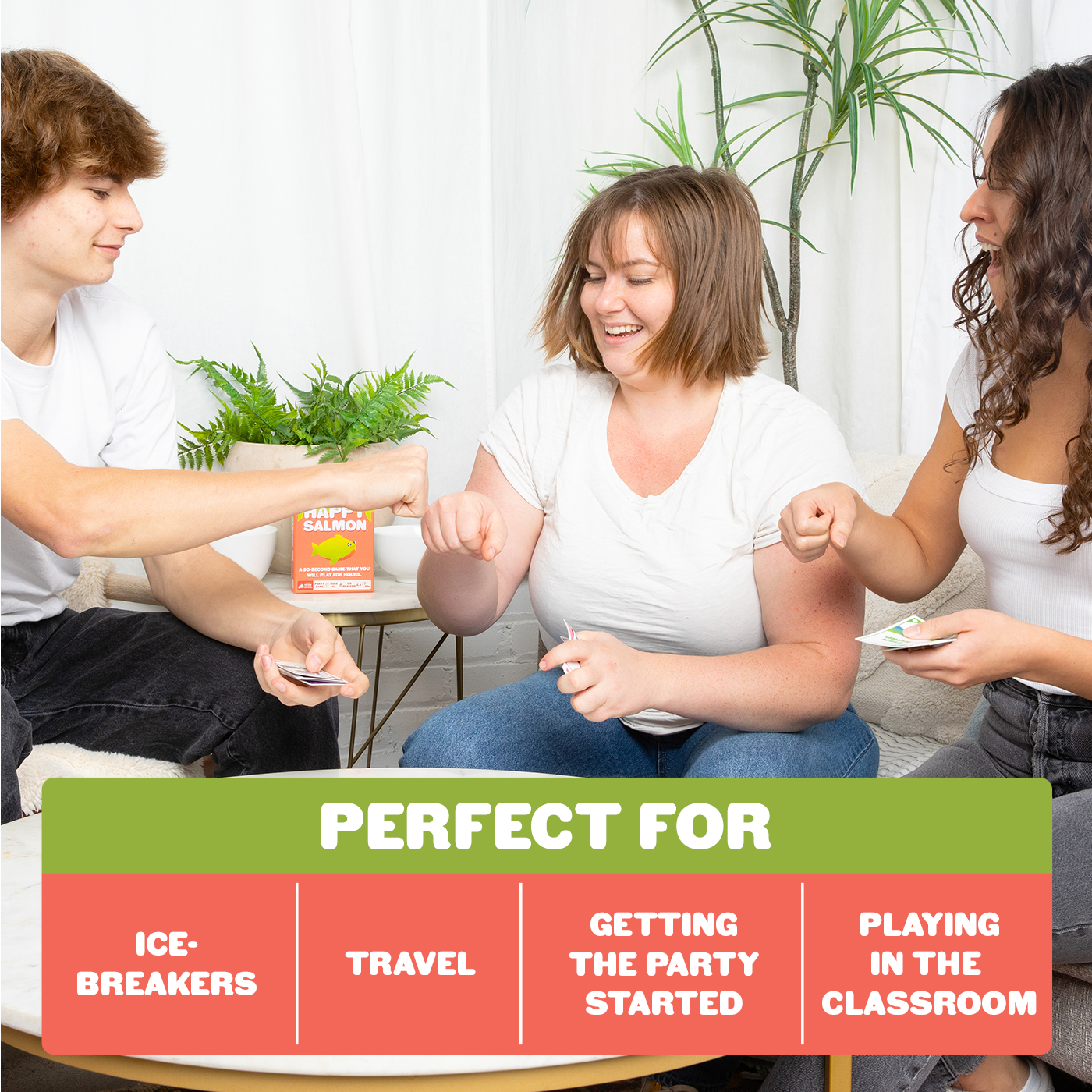 Happy Salmon Grab & Game Edition là một trò chơi thẻ bài tốc độ cao, cực kỳ vui nhộn và nhỏ gọn để bạn có thể mang đi bất cứ đâu. Với lối chơi kéo dài chỉ 90 giây, đây là sự lựa chọn hoàn hảo cho các buổi tiệc tùng hoặc giải trí nhanh.