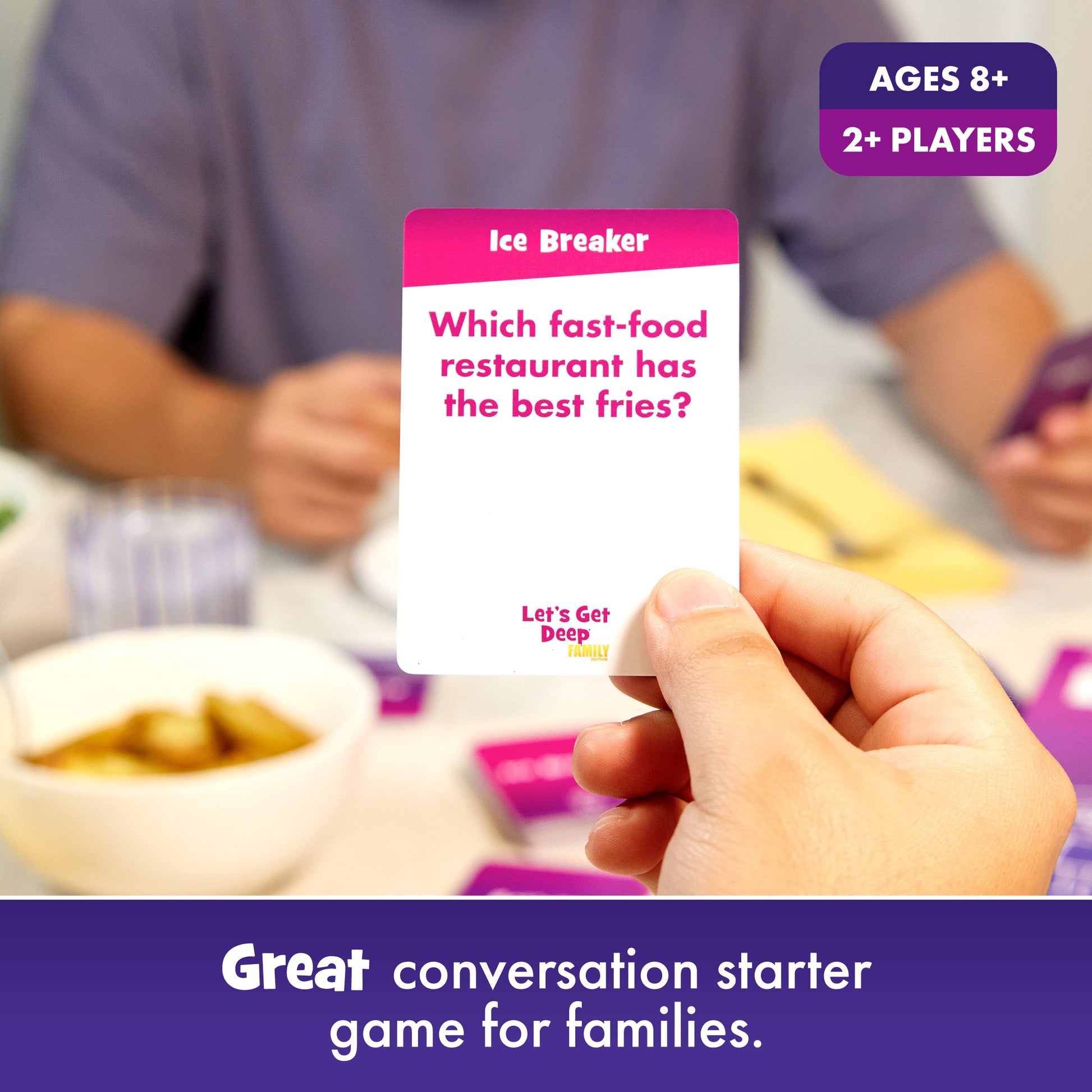 Let's Get Deep® Family Edition là phiên bản gia đình của dòng trò chơi làm quen (get-to-know-you) bán chạy nhất hiện nay. Trò chơi này được thiết kế để biến những bữa ăn gia đình đơn thuần thành một "trạm trò chuyện" đầy ắp tiếng cười và sự kết nối.
