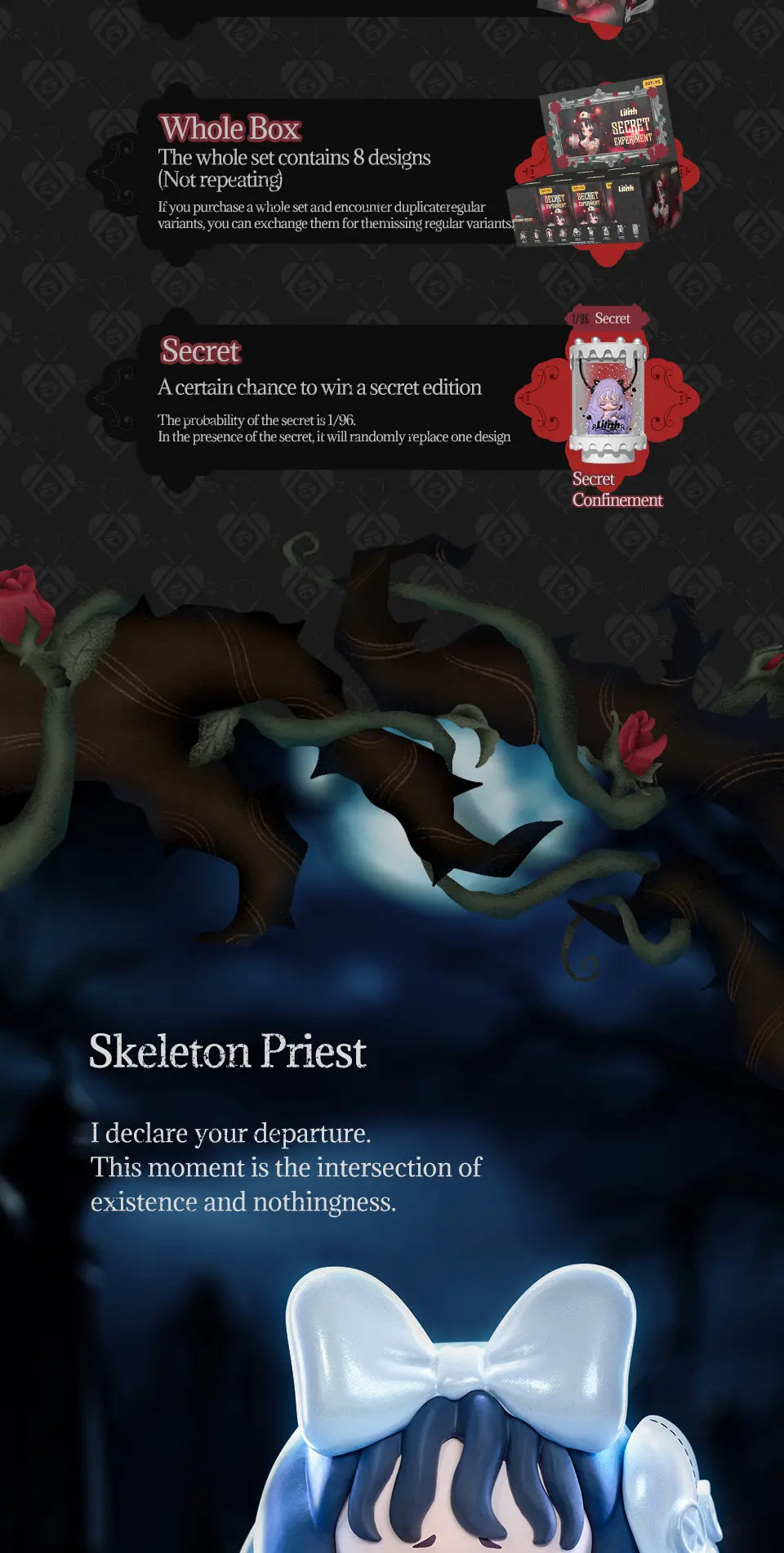 LILITH SECRET EXPERIMENT là bộ sưu tập Art Toy đầy lôi cuốn và bí ẩn từ thương hiệu 52TOYS. Với thiết kế độc đáo mang đậm phong cách kỳ ảo, mỗi mô hình trong series này đưa bạn vào một cuộc hành trình khám phá thế giới thí nghiệm bí mật đầy mê hoặc của cô nàng Lilith.