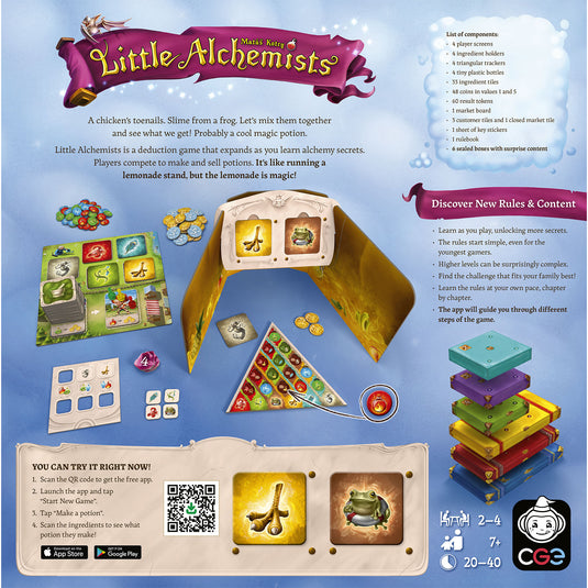 Liệu bạn có thể vượt qua kiến thức của những bậc thầy và trở thành nhà giả kim tài ba nhất vùng đất? Đã đến lúc thu thập nguyên liệu, mài giũa kỹ năng suy luận và bắt đầu pha chế những lọ thuốc kỳ diệu! Little Alchemists là trò chơi suy luận thân thiện với gia đình, được thiết kế để phát triển cùng trí tò mò của trẻ em. Trò chơi khởi đầu với các quy tắc đơn giản: thu thập nguyên liệu và kết hợp chúng để bán thuốc. Khi đạt được mục tiêu, bạn sẽ mở khóa các chương mới, thêm vào những thành phần và cơ chế phức tạp hơn, mang lại trải nghiệm khám phá không ngừng.