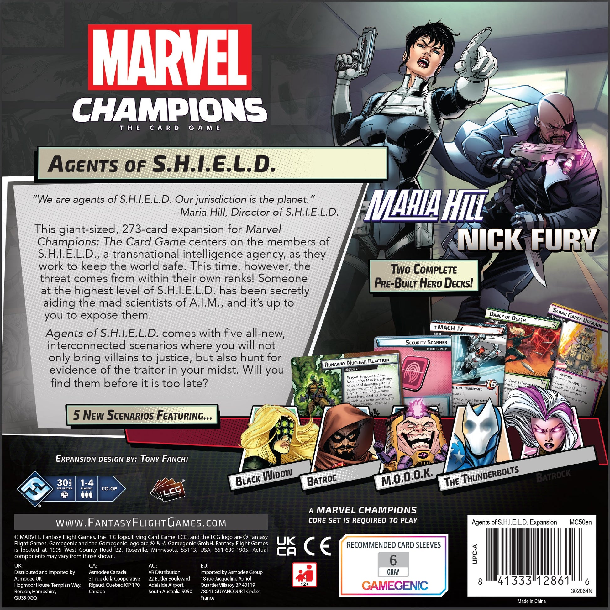Đây là sự khởi đầu của một làn sóng mới cho Marvel Champions: The Card Game! Là bản mở rộng chiến dịch thứ tám, Agents of S.H.I.E.L.D. mang đến hàng loạt nhân vật kinh điển của tổ chức S.H.I.E.L.D., bao gồm hai anh hùng mới có thể chơi được là Maria Hill và Nick Fury. Mỗi người đều đi kèm với một bộ bài được xây dựng sẵn, sẵn sàng để chơi ngay lập tức.