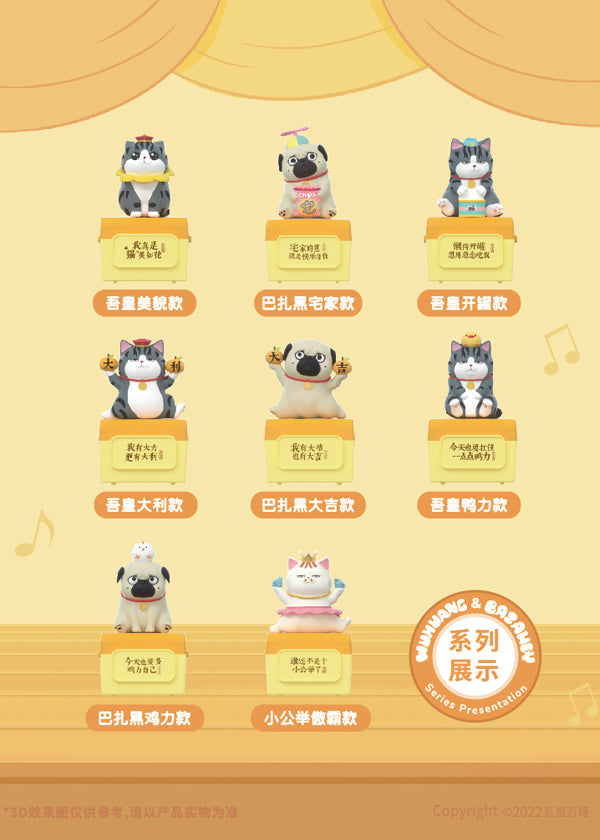 Chào mừng sự trở lại của "Hoàng Thượng" Wuhuang và chú chó Pug Bazahei trong bộ sưu tập Supremo Cat Music Box Model At Home MQYH002 cực kỳ đặc biệt. Đây không chỉ là những mô hình trưng bày thông thường mà còn tích hợp cơ chế hộp nhạc độc đáo.