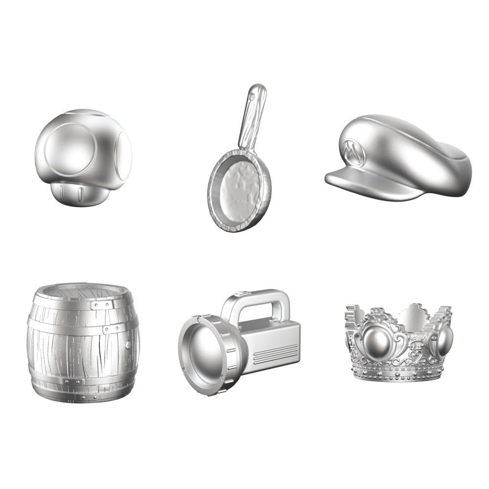 Trò chơi đi kèm với 6 quân cờ (token) bằng nhựa đại diện cho các vật phẩm và nhân vật mang tính biểu tượng: Nấm Super Mushroom, Chảo rán của Toad, Mũ của Mario, Thùng Donkey Kong, Đèn pin của Luigi và Vương miện của Công chúa Peach.