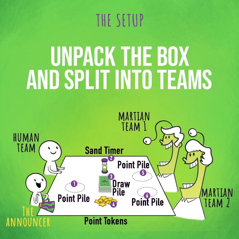 - Giai đoạn Người Sao Hỏa: Người lớn (Martians) phải giúp những người bạn nhỏ của mình đoán được từ khóa. Tuy nhiên, rào cản ngôn ngữ là bạn CHỈ được phép sử dụng những từ có MỘT âm tiết để gợi ý.