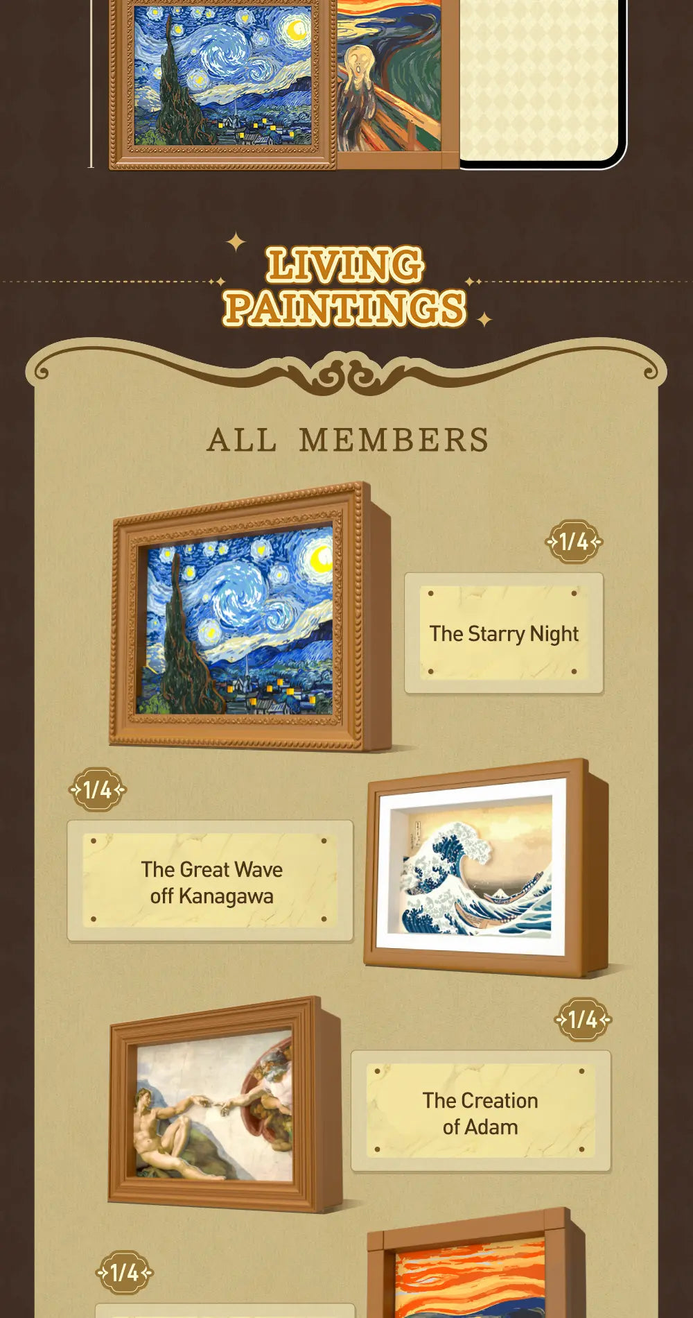 Đưa những kiệt tác hội họa kinh điển vào không gian sống của bạn với bộ sưu tập QUESERA - LIVING PAINTINGS đến từ thương hiệu 52TOYS. Mỗi mô hình trong series này không chỉ là một món đồ chơi nghệ thuật mà còn là một cách tái hiện đầy sáng tạo các bức tranh nổi tiếng thế giới dưới dạng 3D sống động.
