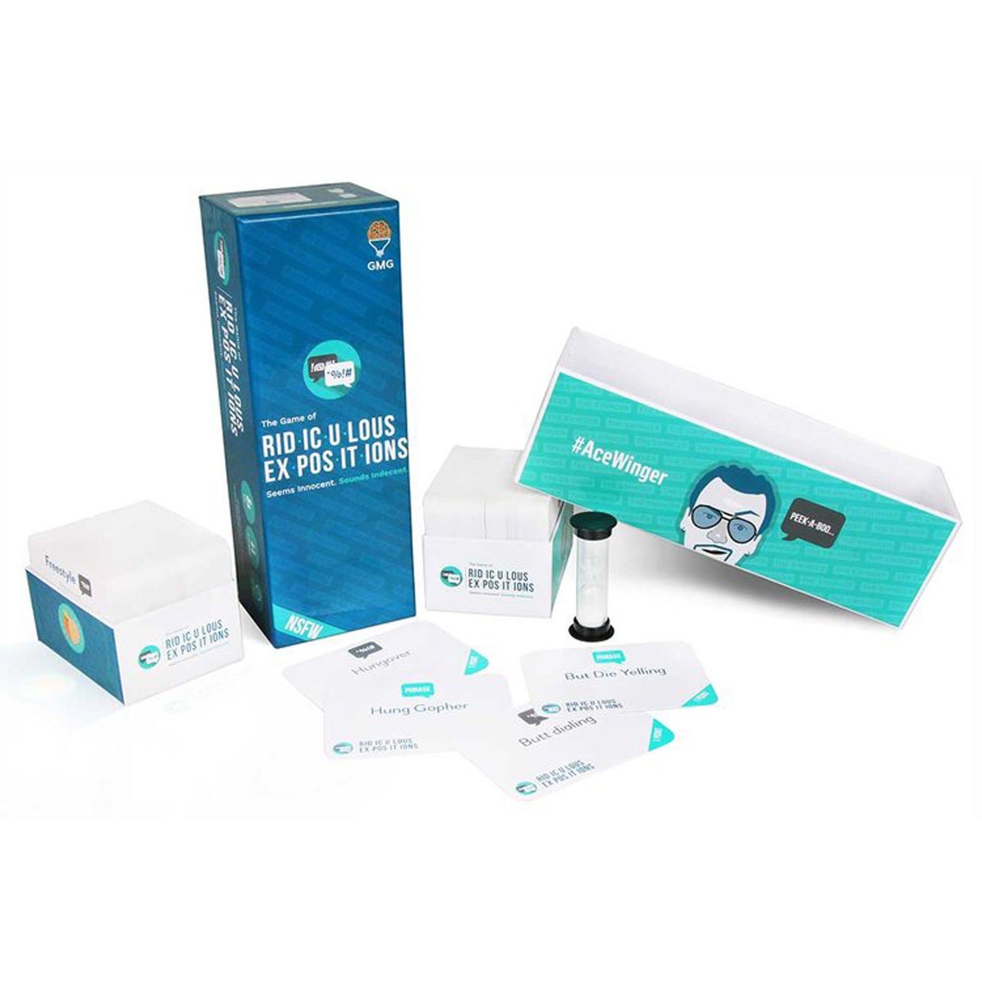 Ridiculous Expositions là trò chơi đố chữ đầy hài hước và táo bạo dành cho người lớn. Với những cụm từ nghe có vẻ vô hại nhưng khi phát âm nhanh và liên tục lại tạo ra những âm thanh vô cùng nhạy cảm, trò chơi hứa hẹn sẽ mang đến những tràng cười không ngớt cho bất kỳ buổi tiệc nào.