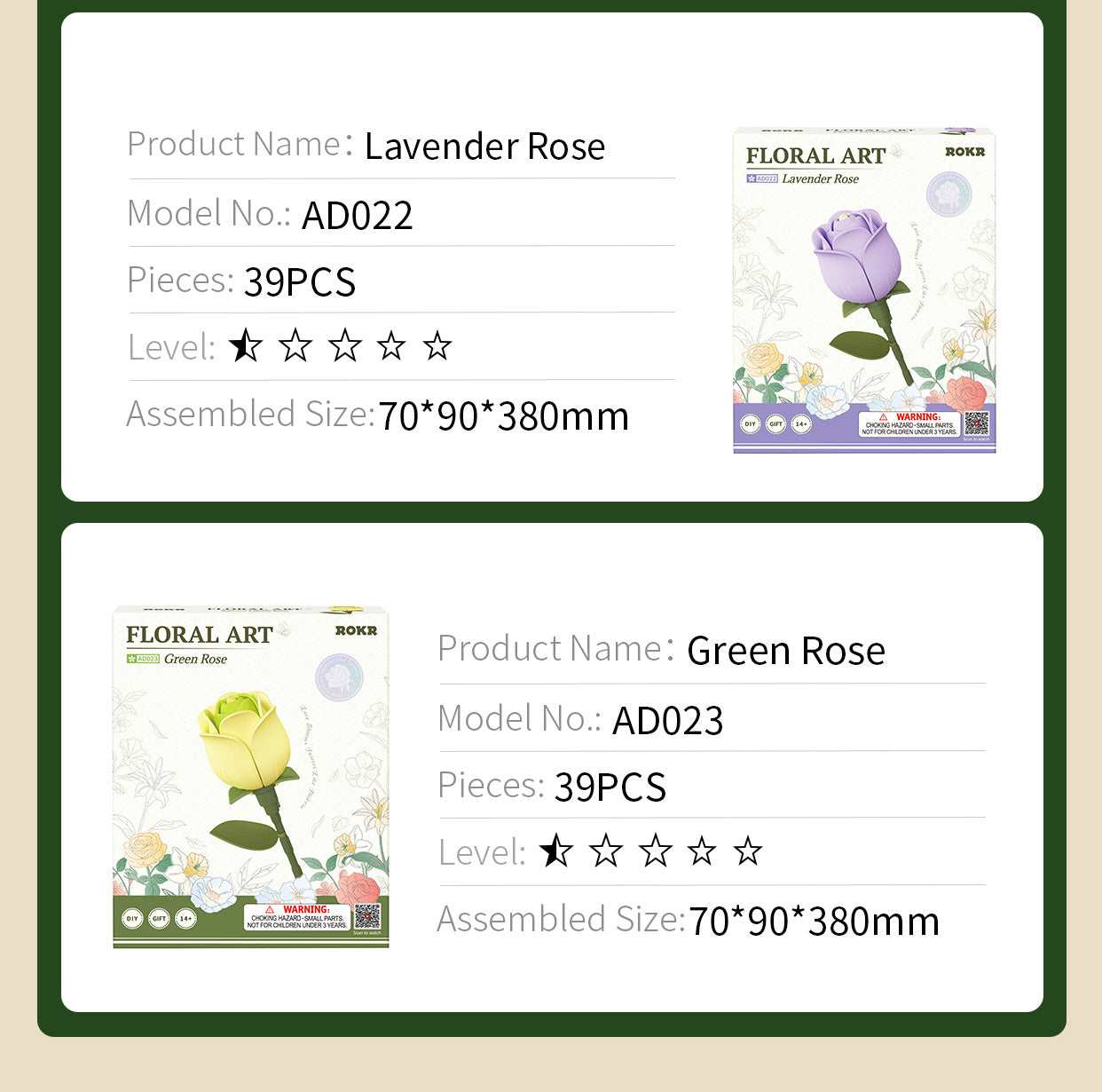 ROKR Single Flower Floral Art DIY 3D Puzzle là một tác phẩm nghệ thuật tinh xảo được tạo ra bởi chính đôi tay và trái tim của bạn. Đây là sự bổ sung hoặc thay thế hoàn hảo cho các bộ sưu tập Floral Art hiện có của bạn, mang đến vẻ đẹp vĩnh cửu không bao giờ phai tàn.