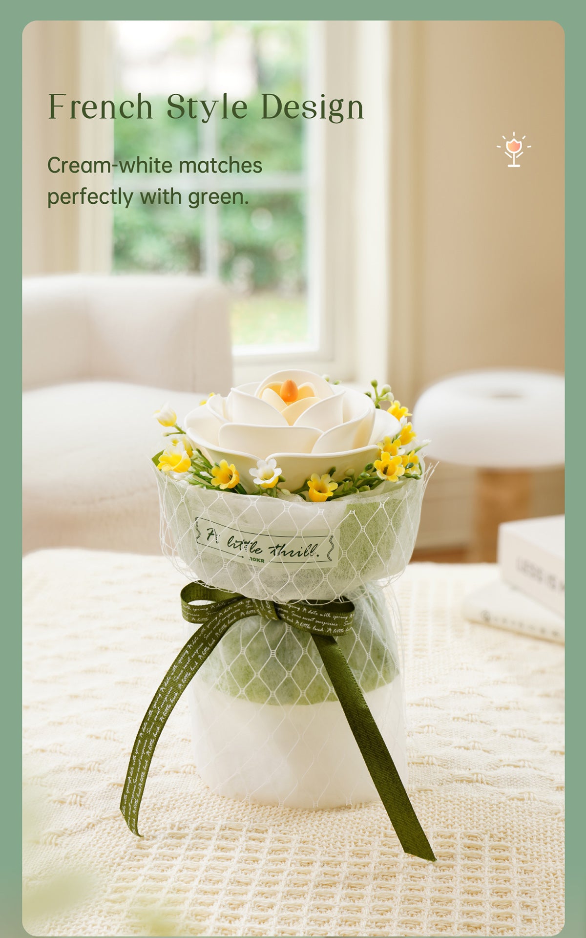 - Thiết kế tinh xảo: Tái hiện chân thực từng cánh hoa trà trắng muốt, mang lại cảm giác nhẹ nhàng và sang trọng.
