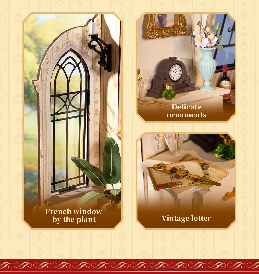 Catherine's Living Room DG175 là một trong những mẫu mô hình nhà gỗ DIY tí hon sang trọng nhất từ Rolife. Với thiết kế tinh xảo, giàu chi tiết và mang đậm nét cổ điển, sản phẩm phản ánh phong cách sống thanh lịch, có chiều sâu của chủ nhân. Đây không chỉ là một món đồ chơi lắp ráp mà còn là một tác phẩm nghệ thuật để bạn tự hào trưng bày trong không gian sống của mình.