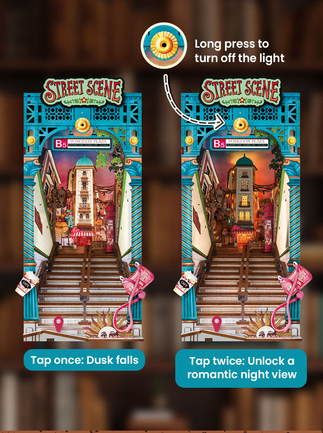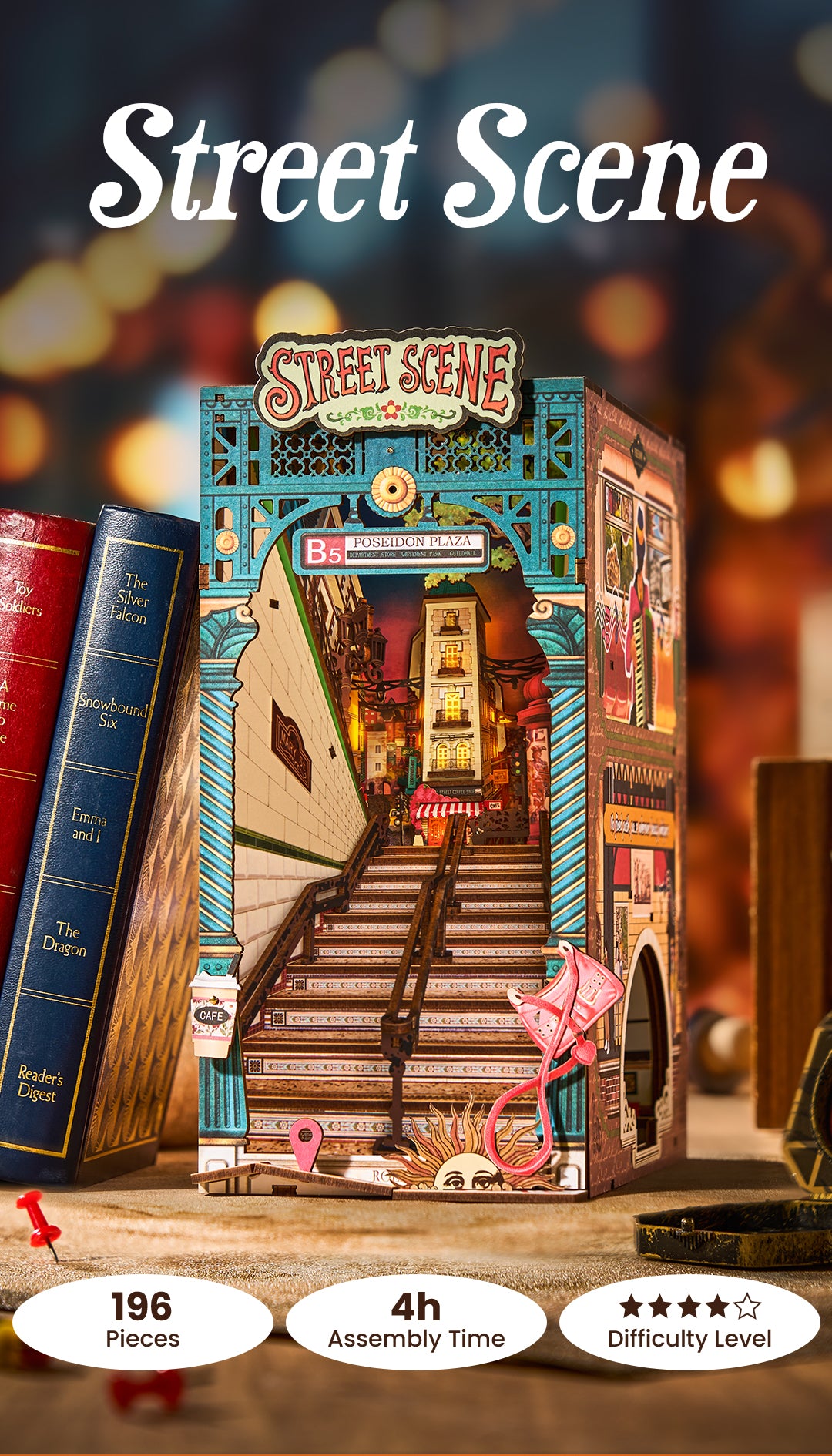 Chào mừng bạn đến với khung cảnh thành phố nhộn nhịp cùng Rolife DIY Book Nook - Street Scene TGB13