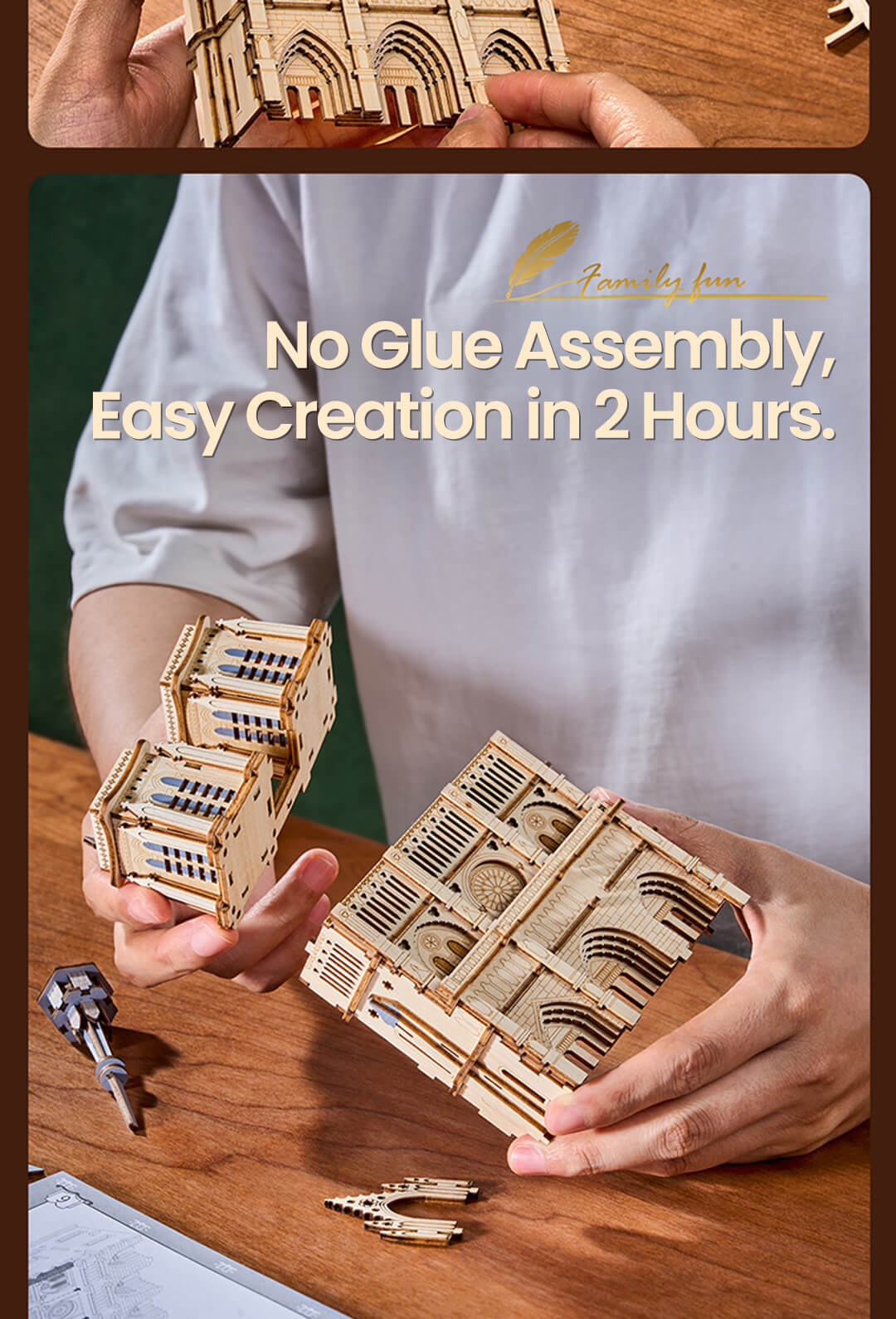 - Chất liệu gỗ cao cấp: Các mảnh ghép được làm từ gỗ tự nhiên, thân thiện với môi trường và có độ bền cao, dễ dàng lắp ráp mà không cần keo.