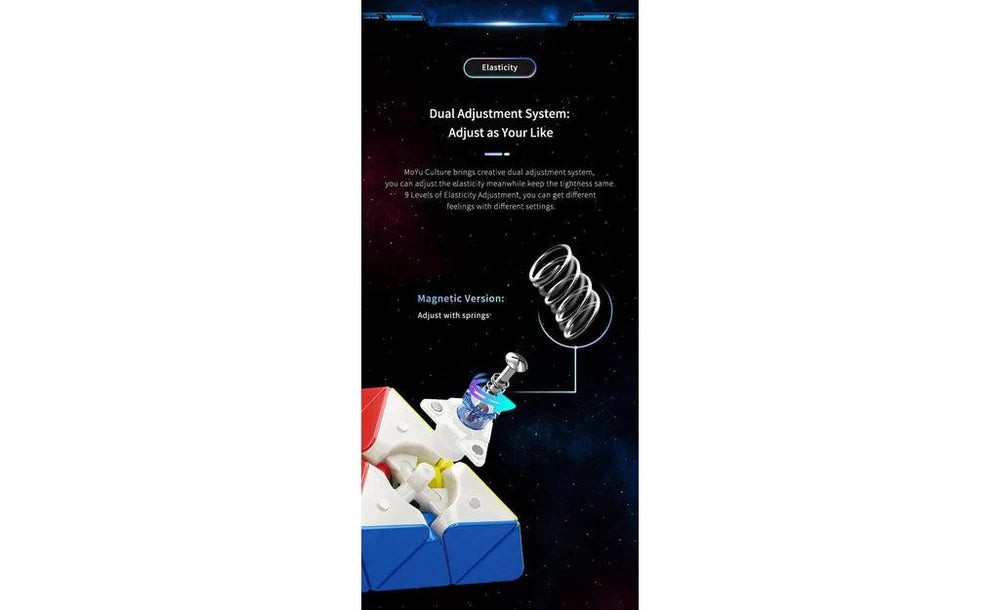 MoYu RS3 Pyraminx cho phép tùy chỉnh tension với 9 mức điều chỉnh, giúp người chơi dễ dàng thiết lập cube theo phong cách riêng.