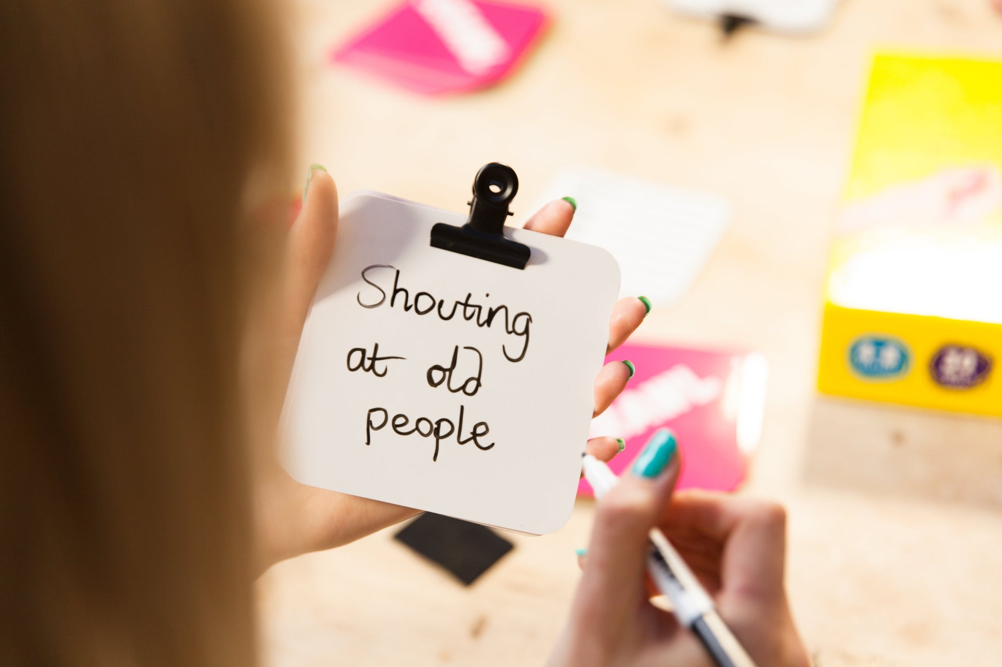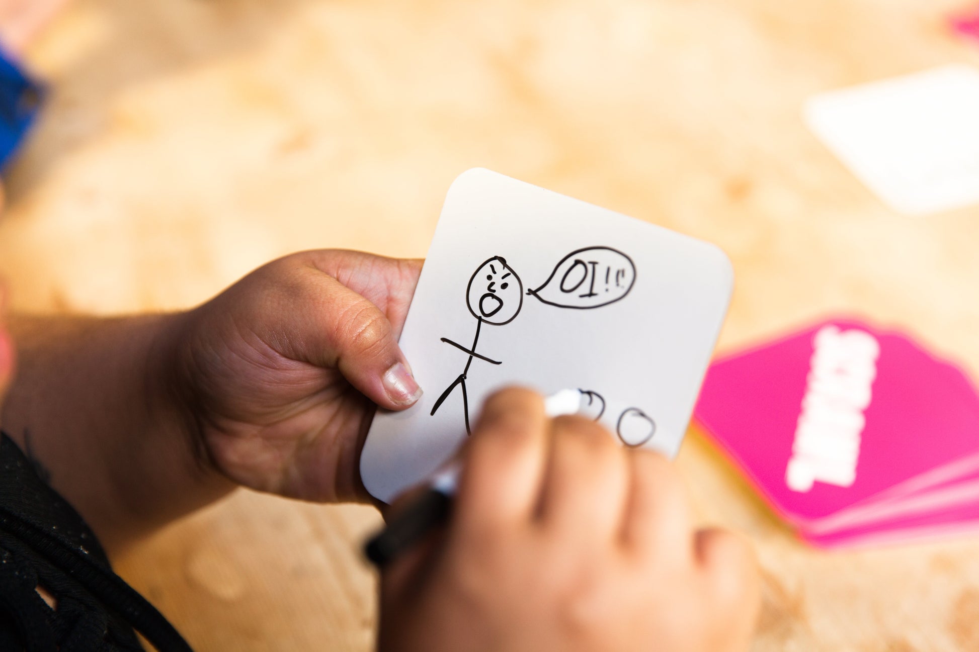 - Thành phần bộ game: 240 thẻ bài tình huống, 8 bảng vẽ có kẹp, 8 bút lông có đầu xóa, bảng tính điểm.