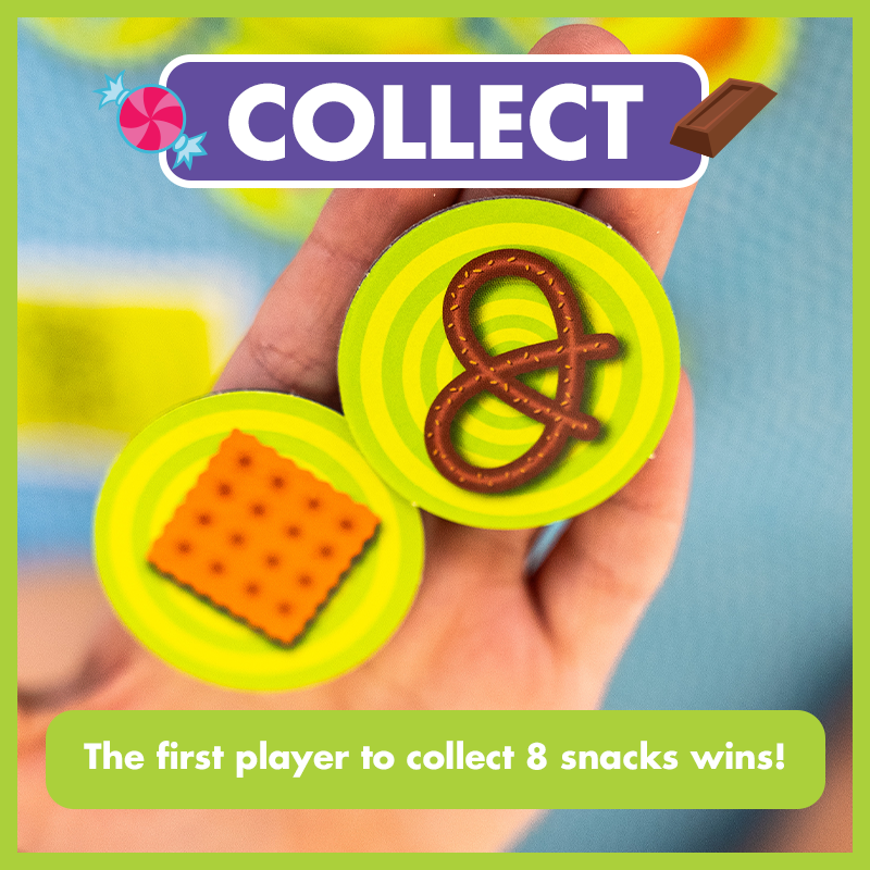 - Vừa chơi vừa ăn: Mục tiêu là thu thập đủ 8 món ăn nhẹ. Bạn có thể sử dụng đồ ăn thật hoặc các token có sẵn trong hộp để tăng thêm phần kịch tính.