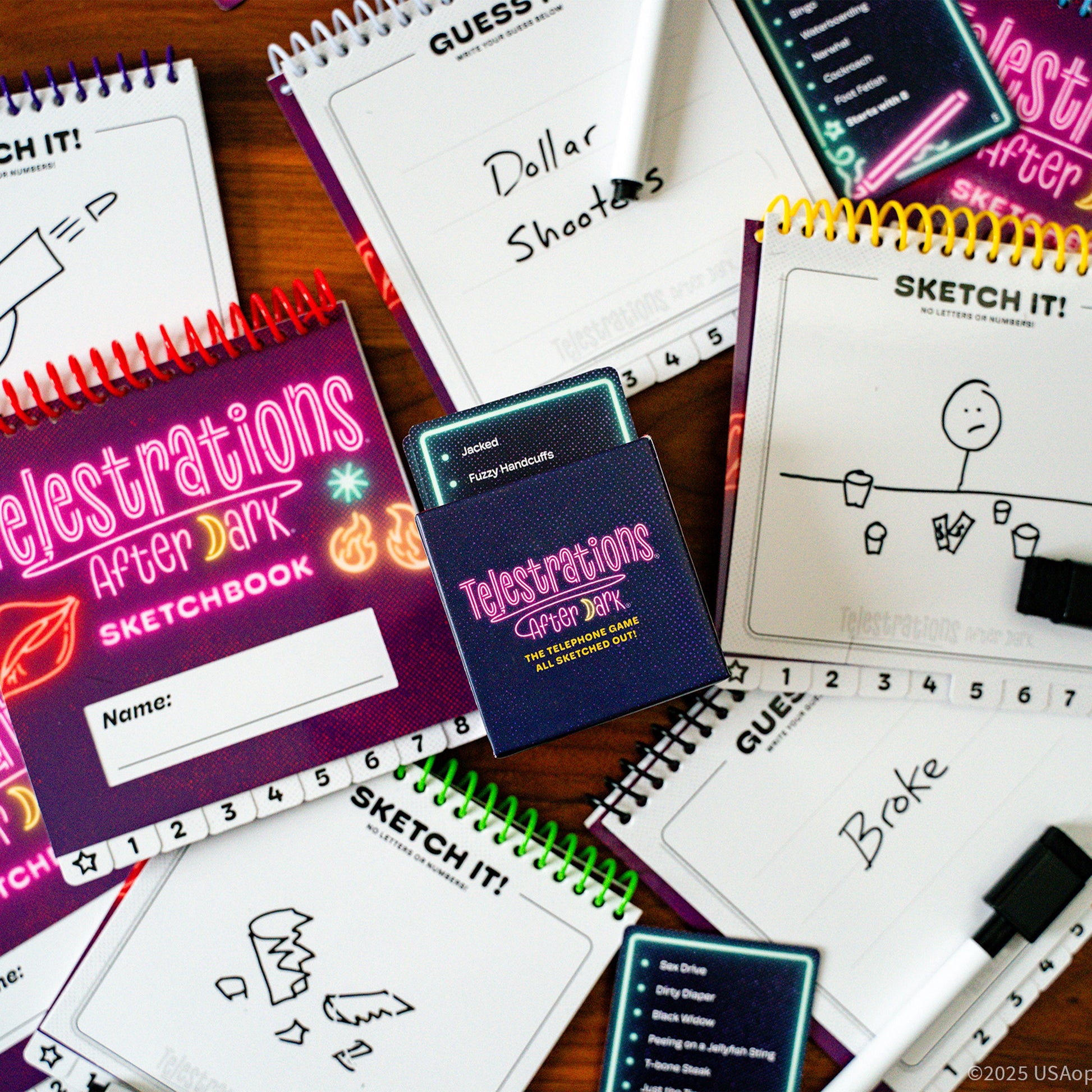 Hãy sẵn sàng cho một đêm tiệc bùng nổ với Telestrations After Dark, nơi khả năng hội họa không quan trọng bằng trí tưởng tượng phong phú (và đen tối) của bạn!