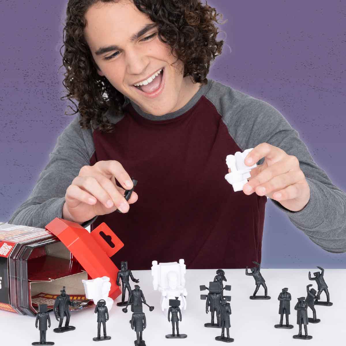 - Thiết kế đa dạng: Bộ đồ chơi bao gồm 20 nhân vật khác nhau, từ các Skibidi Toilet kỳ quái đến lực lượng Cameraman, Tvman, Speakerman...