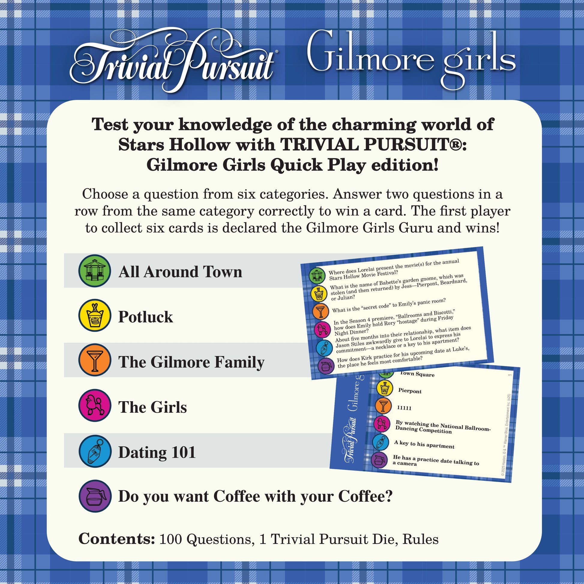 Hãy cùng kiểm tra kiến thức của bạn về thế giới quyến rũ của Stars Hollow với phiên bản TRIVIAL PURSUIT®: Gilmore Girls Quick Play! Đây là trò chơi giải đố hoàn hảo dành cho những fan hâm mộ trung thành muốn khẳng định mình là một 'Gilmore Girls Guru'.