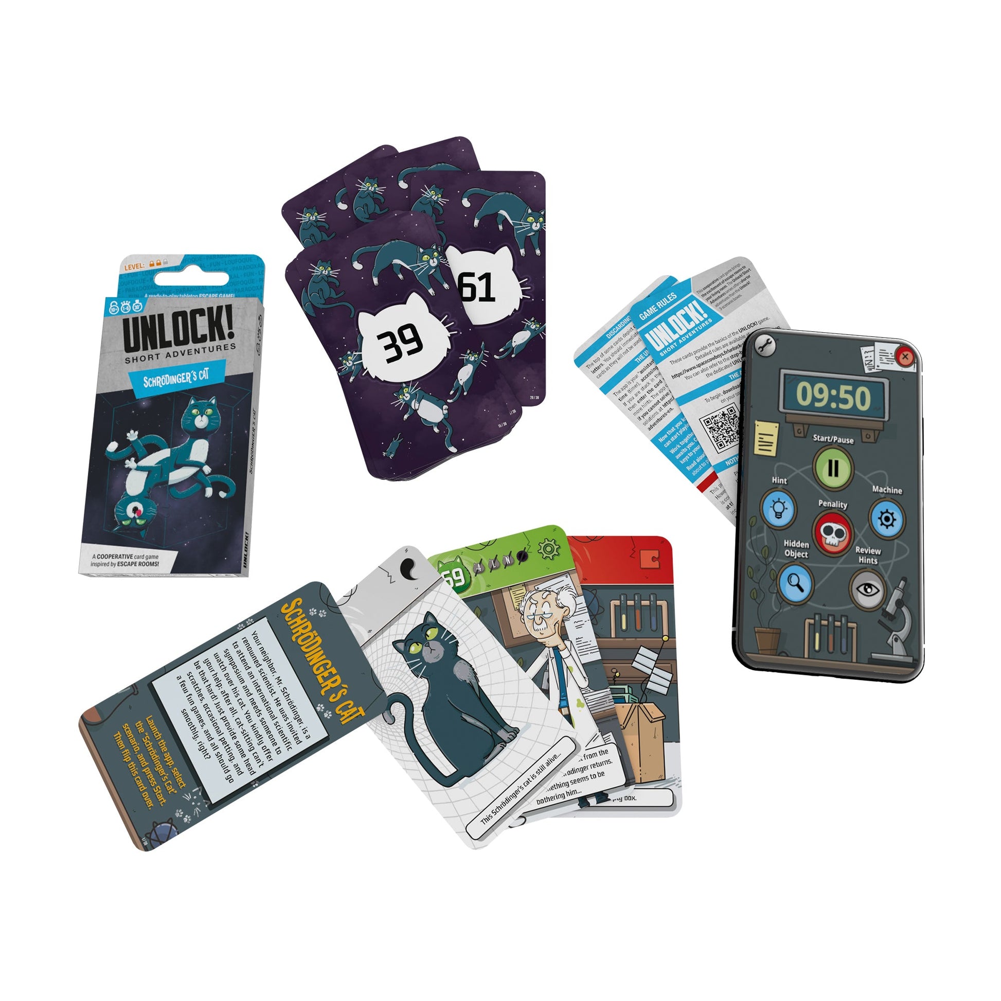 Trải nghiệm cảm giác hồi hộp của một phòng thoát hiểm ngay tại nhà với UNLOCK! Short Adventures 8: Schrödinger's Cat. Trong cuộc phiêu lưu này, bạn sẽ bước vào một thế giới kỳ thú để tìm kiếm chú mèo nổi tiếng của Schrödinger đã mất tích. Với định dạng thẻ bài nhỏ gọn, đây là phiên bản lý tưởng để giải trí mọi lúc, mọi nơi.