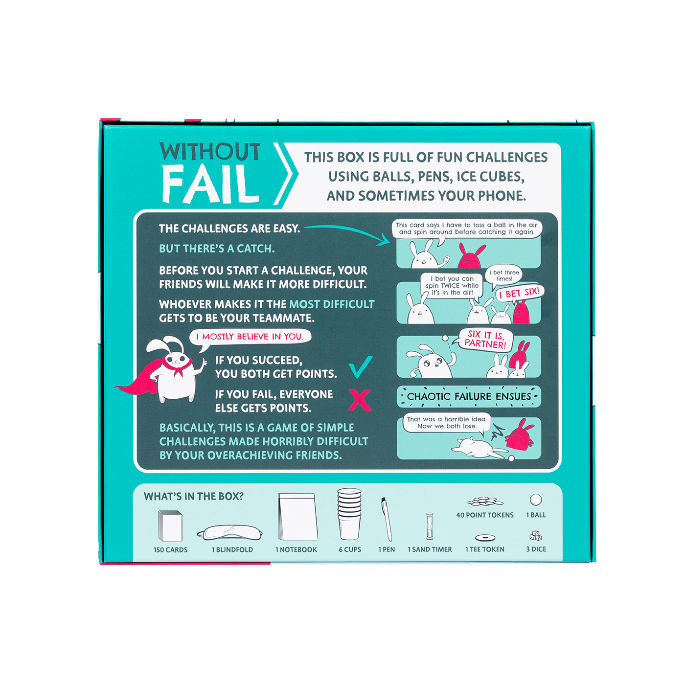 Without Fail là tựa game tiệc tùng sôi động giúp khuấy động bầu không khí ngay lập tức. Bạn sẽ bắt đầu với một thử thách cực kỳ đơn giản. Nhưng trước khi bạn thực hiện, bạn bè của bạn sẽ có cơ hội khiến thử thách đó trở nên khó khăn hơn (và hài hước hơn) gấp nhiều lần!