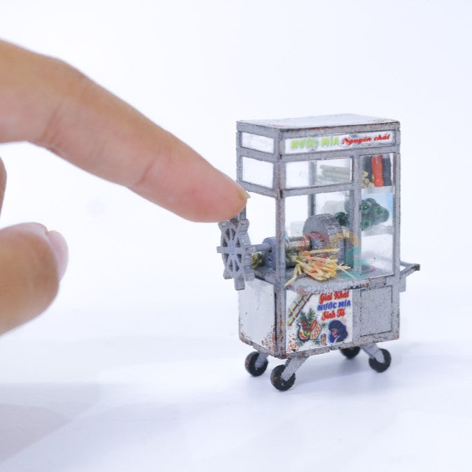 Sản phẩm thuộc Bộ sưu tập "Xe Đẩy Hàng Rong 2", tái hiện chân thực và tinh xảo hình ảnh chiếc xe nước mía quen thuộc trên mọi nẻo đường Sài Gòn. Từng chi tiết nhỏ như chiếc máy ép, ly nước mía, hay những vết rỉ sét nhuốm màu thời gian đều được mô phỏng tỉ mỉ dưới tỷ lệ 1/35.